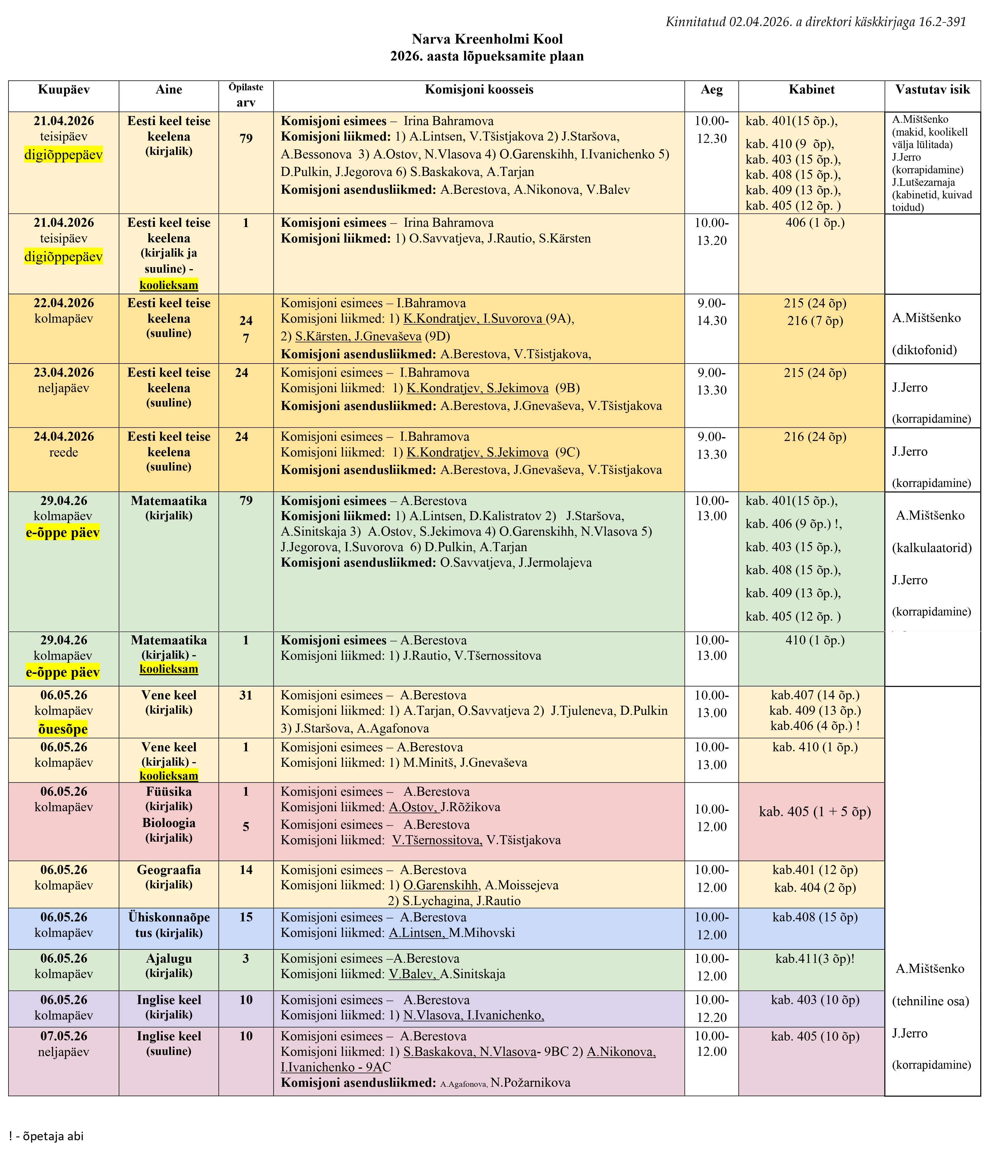 | Matemaatika (kirjalik) | 29. aprill 2026. a |