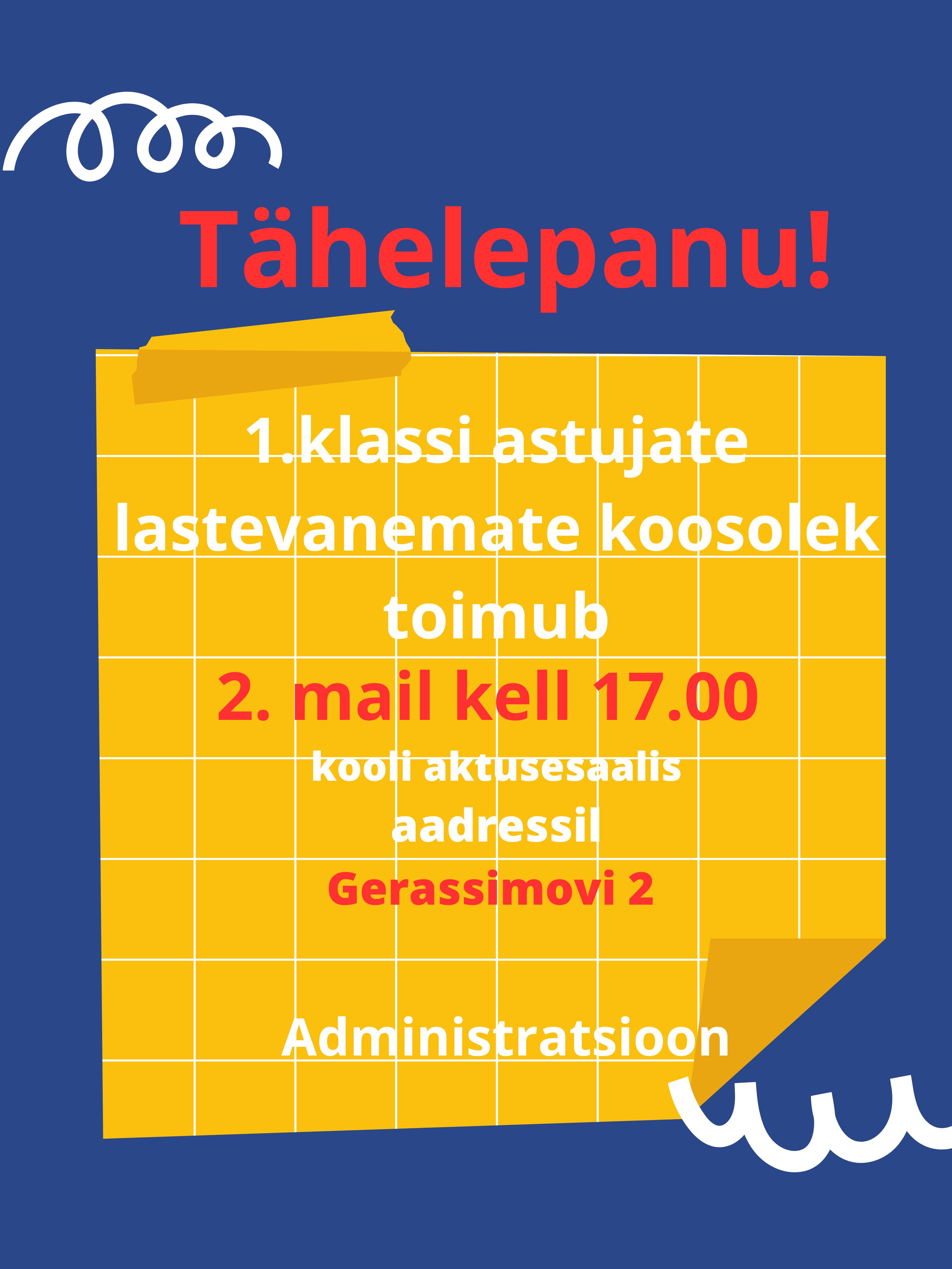 Lugupeetud 1. klassi lapsevanemad!