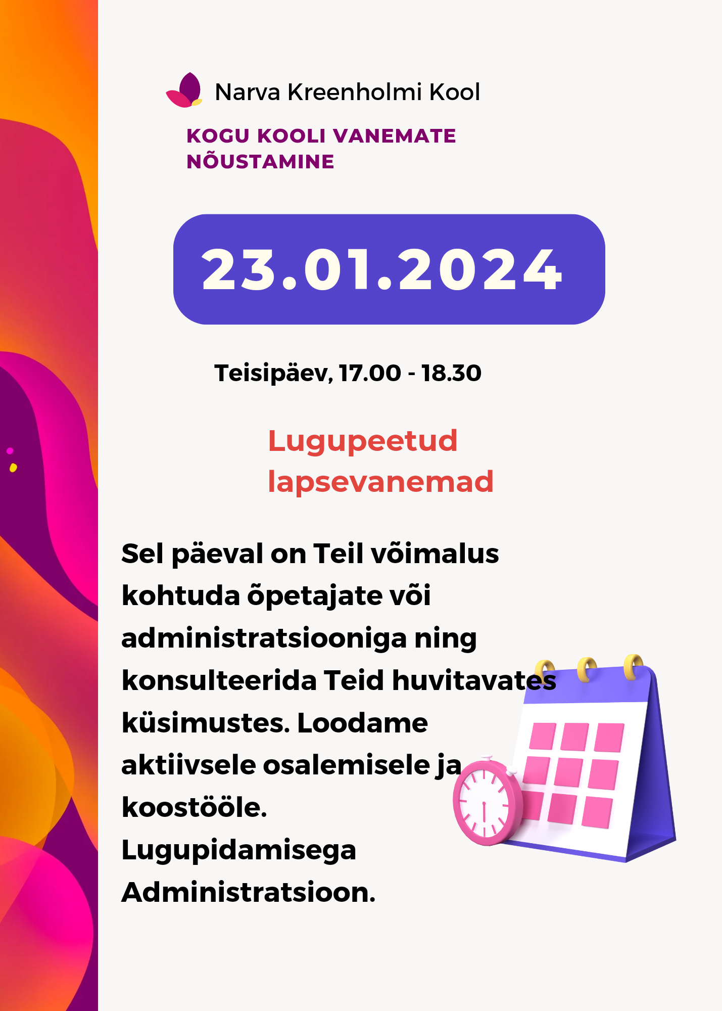 Tähelepanu kõik Narva Kreenholmi Kooli 4.klassi õpilased!